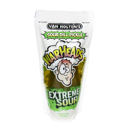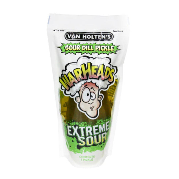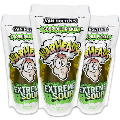 Van Holten's Warheads flavored pickle is an extreme sour pickle! No sugar coating here! We packed all the sour flavor we could into this WARHEADS Extreme Sour Dill Pickle, built for super sour fanatics. Available in Jumbo size.